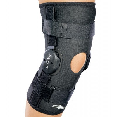 The DonJoy Hinged Knee, designed for mild to moderate medial lateral control, is available in both Neoprene and Drytex materials.
