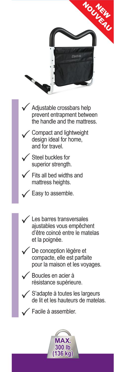 • This bed safety rail has a unique M shape that allows for multiple gripping positions and the easy to assemble, compact design makes it ideal for travel