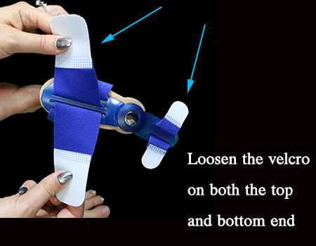 Loosen the velcro on top and bottom. Slip the wider part under the arch and narrow part over the big toe. Tighten the velcro to your desired level of comfort. Read instruction slip inside the box on use and maintainance.